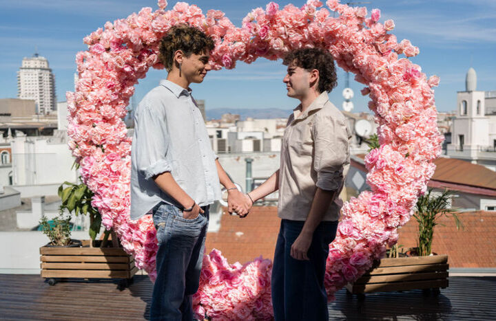 “An unforgettable proposal for Fer & Angie, overlooking the panoramic skyline of Madrid from an exclusive terrace with a pool.”