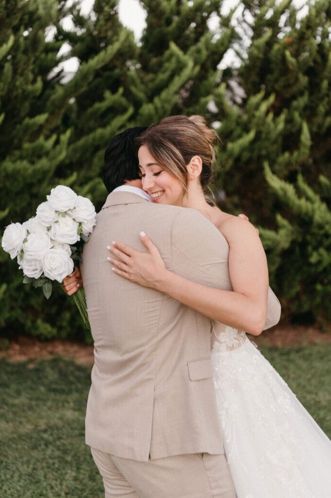 Терраса у бассейна, уже впечатляющая своими панорамными видами на мадридский горизонт, в тот день превратилась в интимную, но вместе с тем эффектную сцену благодаря тщательно продуманному оформлению от Natalia Ortiz Events.
